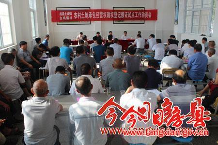 今日房縣網(wǎng)訊 記者王瑋 通訊員 劉艷慧 潘春夫 報(bào)道:16日,土城鎮(zhèn)白雞鋪村舉行農(nóng)村土地承包經(jīng)營權(quán)確權(quán)登記頒證試點(diǎn)工作 動員會。土城鎮(zhèn)白雞鋪村、尹吉甫鎮(zhèn)沈家灣村和野人谷鎮(zhèn)千坪村被確定為全縣農(nóng)村土地承包經(jīng)營權(quán)確權(quán)登記頒證的三個(gè)試點(diǎn)村, 隨著沈家灣村、白雞鋪村先后啟動試點(diǎn)工作,標(biāo)志著我縣農(nóng)村集體土地確權(quán)登記頒證試點(diǎn)工作已全面啟動。