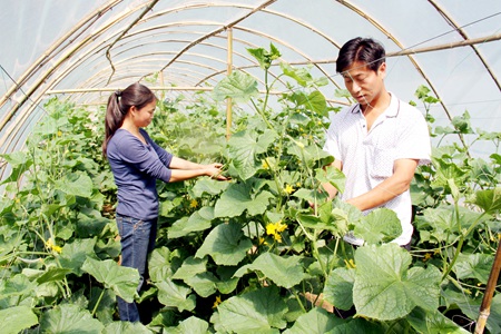 5月18日,紅塔鎮(zhèn)潮汪村一組貧困戶陳啟剛、廖群梅夫婦正在蔬菜大棚里采摘黃瓜。陳啟剛家有6口人,以前住在潮汪村的山頂上,由于交通不便,家庭十分困難。精準扶貧工作開展以來,他家被定為易地扶貧搬遷戶。2016年7月,陳啟剛投資8萬元租用了城關鎮(zhèn)白露社區(qū)6組土地15畝發(fā)展蔬菜產(chǎn)業(yè),當年建蔬菜大棚6個,純收入3萬多元。目前,他已發(fā)展大棚18個、露天種植蔬菜5.4畝、種植水稻3.4畝。今年預計收入12萬多元。(趙愛平 趙先華 攝)