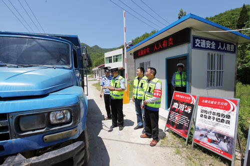 聯(lián)合執(zhí)法隊(duì)伍在黃泥溝交通安全勸導(dǎo)站對(duì)過(guò)往車輛進(jìn)行安全檢查
