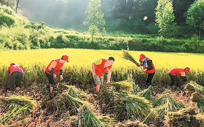 8月25日,重慶市豐都縣電力公司駐鸚鵡村幫扶工作隊(duì)和鸚鵡村黨員干部共20多名紅鐮志愿者頭頂烈日為貧困戶陳明福收割稻谷2.8畝。 |