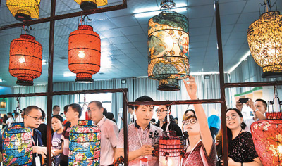 8月23日,游人在參觀山西省廣靈縣旭隆工藝品制作有限公司的仿古燈籠。該公司在鄉(xiāng)村設(shè)立仿古燈籠加工點(diǎn),開(kāi)展仿古燈籠制作技術(shù)培訓(xùn),目前已解決當(dāng)?shù)亟n立卡貧困戶200多人的就業(yè)問(wèn)題。 |