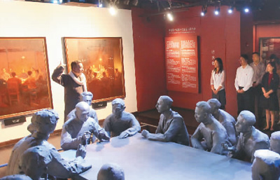 7月1日,“七一”主題活動在中共一大會址舉行。圖為黨員在聆聽“初心與使命”情景黨課并參觀陳列展。 |