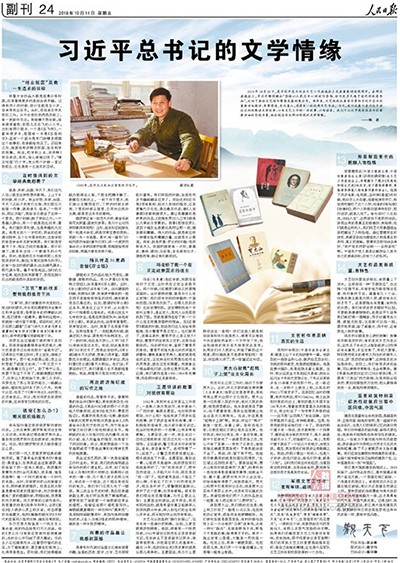 2016年10月14日,《人民日報》在第24版刊登了《習(xí)近平總書記的文學(xué)情緣》一文,文章的第一段就提到了“精忠報國”的故事。