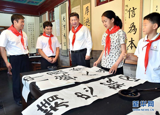 “精忠報國”的故事,總書記不止一次提及。早在2014年兒童節(jié)前夕,習(xí)近平來到北京市海淀區(qū)民族小學(xué)看望少年兒童,當看到正在練書法的孩子們寫下“精忠報國”4個字時,他有感而發(fā),為孩子們講述了自己的這段童年記憶。
