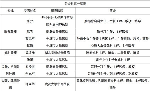專 家:湖北省腫瘤醫(yī)院、華中科技大學同濟醫(yī)學院附屬同濟醫(yī)院、華中科技大學同濟醫(yī)學院附屬協(xié)和醫(yī)院、武漢大學人民醫(yī)院、武漢大學中南醫(yī)院、湖北省婦幼保健院、十堰市人民醫(yī)院、荊州市第一人民醫(yī)院等400名全省腫瘤專業(yè)精英。