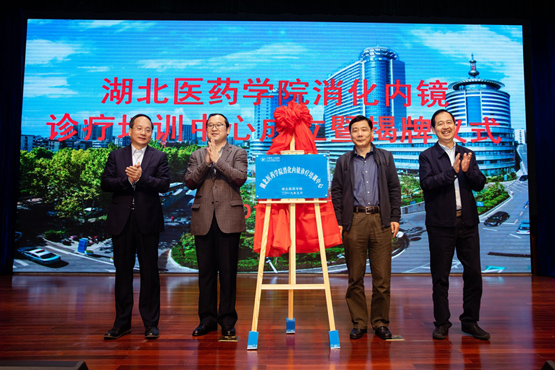 湖北醫(yī)藥學(xué)院黨委書記涂漢軍,湖北省消化病學(xué)會主委、華中科技大學(xué)同濟(jì)醫(yī)學(xué)院副院長、協(xié)和醫(yī)院大內(nèi)科主任侯曉華,華中科技大學(xué)同濟(jì)醫(yī)學(xué)院附屬同濟(jì)醫(yī)院胃腸腫瘤研究所所長龔建平,市人民醫(yī)院黨委書記、院長鐘森等領(lǐng)導(dǎo)和專家出席開幕式并致辭。十堰市人民醫(yī)院副院長、消化疾病中心主任孫澤群主持。與會領(lǐng)導(dǎo)共同為湖北醫(yī)藥學(xué)院消化內(nèi)鏡診療培訓(xùn)中心揭牌并合影。