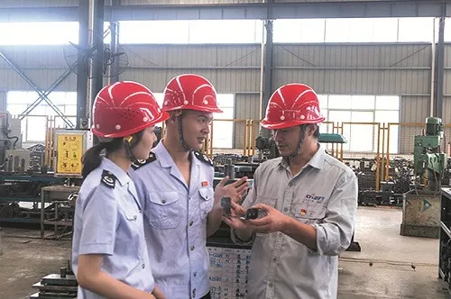 稅務(wù)干部在企業(yè)了解生產(chǎn)經(jīng)營情況