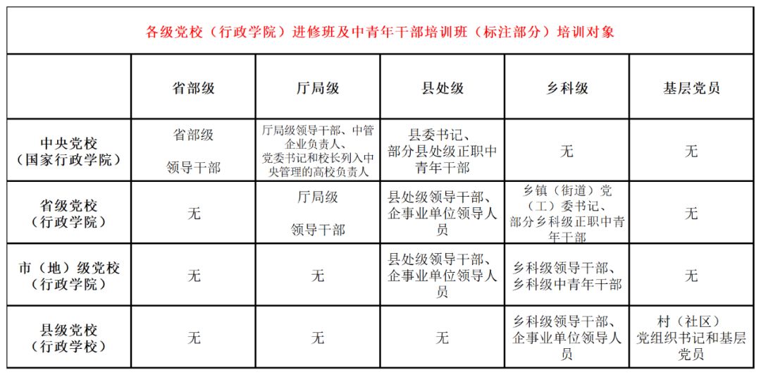 中央黨校(行政學(xué)院)培訓(xùn)對象一般從省部級到縣處級正職