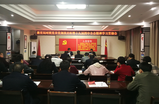 今日房縣網(wǎng)訊 通訊員 徐少輝 報道:為認真學習貫徹黨的十九屆四中全會精神,深入推進“不忘初心、牢記使命”主題教育走心走實。近日,房縣教育局召開對照黨章黨規(guī)找差距暨十九屆四中全會精神學習貫徹會,會議由黨組書記周興富主持,縣委主題教育巡回指導組昝開、劉曉曦到會指導。