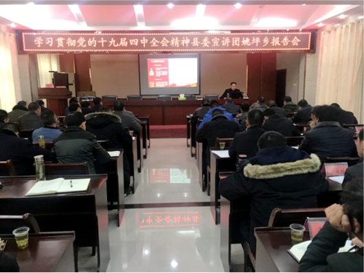 今日房縣網(wǎng)訊 通訊員 馮磊 報(bào)道:12月15日上午,姚坪鄉(xiāng)召開學(xué)習(xí)貫徹黨的十九屆四中全會(huì)精神宣講報(bào)告會(huì),縣委宣講團(tuán)成員、縣委黨校教育長秦明同志到會(huì)作宣講報(bào)告。姚坪鄉(xiāng)全體機(jī)關(guān)干部、村書記、鄉(xiāng)直單位負(fù)責(zé)人、駐村工作隊(duì)第一書記等80余人參加學(xué)習(xí)。