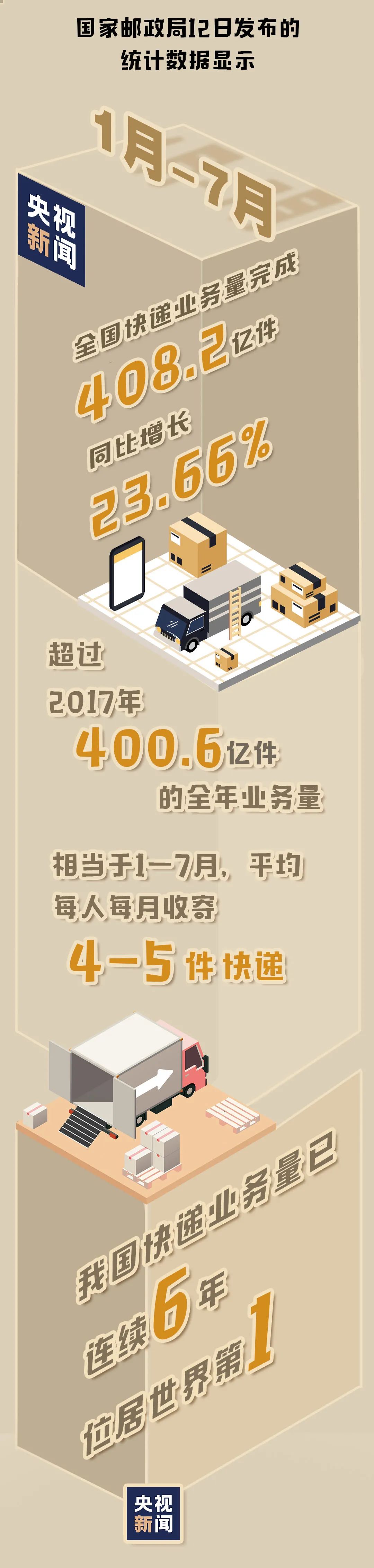國家郵政局昨天(8月12日)發(fā)布了1一7月快遞業(yè)務量統(tǒng)計數(shù)據(jù),快來看看你貢獻了多少?