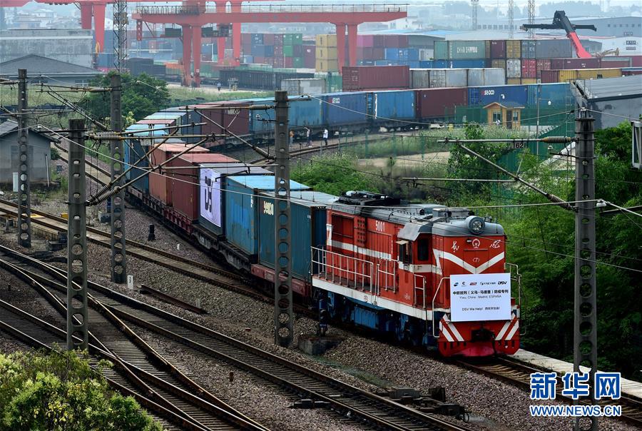 6月5日,滿載防疫物資的“義新歐”中歐班列(義烏-馬德里)在義烏西站啟程,前往西班牙首都馬德里。新華社發(fā)(呂斌 攝)