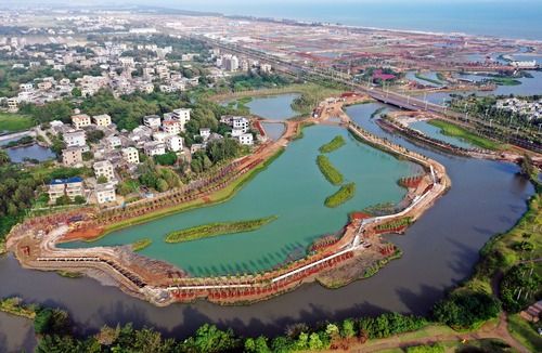 這是海口市江東新區(qū)芙蓉河綜合治理工程(11月6日攝,無(wú)人機(jī)照片)。新華社記者 郭程 攝