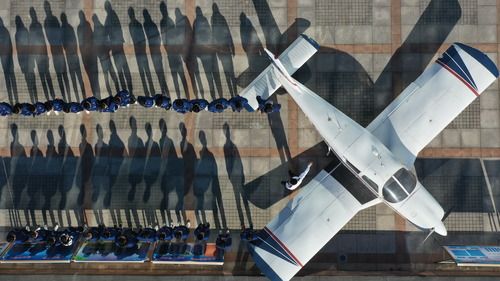 12月17日,河北省唐山市豐潤(rùn)區(qū)綜合職業(yè)技術(shù)教育中心飛機(jī)維修專業(yè)教師在給學(xué)生上課(無(wú)人機(jī)照片)。新華社記者 牟宇 攝