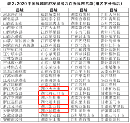 湖北六地入選“2020中國(guó)縣域旅游發(fā)展?jié)摿Π購(gòu)?qiáng)縣市”