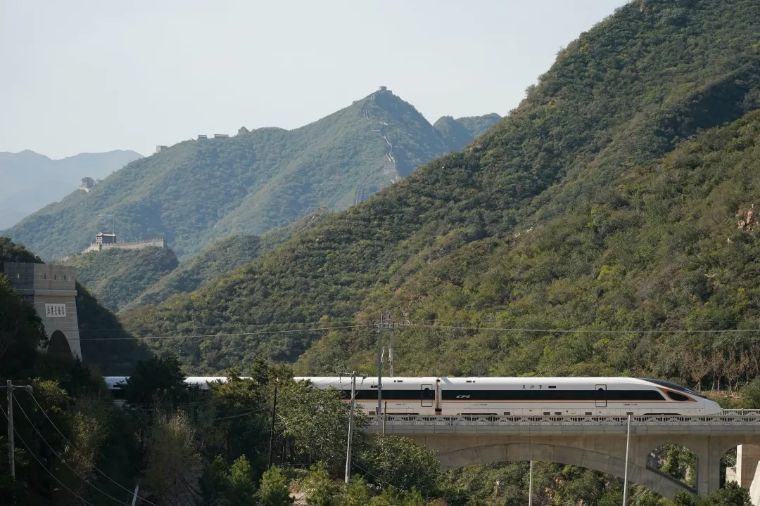 ↑2019年12月30日,北京冬奧會重要配套基礎(chǔ)設(shè)施工程——北京至張家口高速鐵路開通運營。京張高鐵是由我國自主設(shè)計建造的時速350公里智能高速鐵路。開通后,北京至張家口太子城的冬奧會主賽場可在1小時內(nèi)通達,同時為推動北京非首都功能疏解、京津冀協(xié)同發(fā)展注入新動力。這是一列復興號高鐵列車從京張高鐵駛過居庸關(guān)長城(2020年10月6日攝)。新華社記者 鞠煥宗 攝