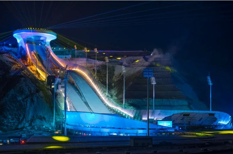 ↑位于河北省張家口市崇禮區(qū)的國家跳臺滑雪中心別名“雪如意”,是北京冬奧會的主要比賽場館之一。主體建筑靈感來自中國傳統(tǒng)飾物“如意”,實現(xiàn)了建筑設(shè)計和中國傳統(tǒng)文化的有機結(jié)合,也是2022年北京冬奧會張家口賽區(qū)工程量最大、技術(shù)難度最高的競賽場館。這是“雪如意”夜間燈光點亮效果(無人機照片,2020年12月19日攝)。新華社發(fā)