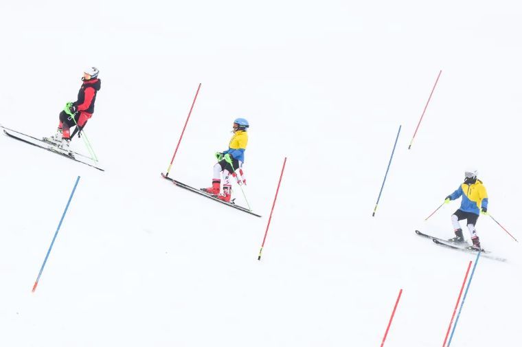 ↑為備戰(zhàn)2022年北京冬奧會,選拔優(yōu)秀隊員,中國國家高山滑雪集訓隊自2018年底起陸續(xù)在歐洲阿爾卑斯山區(qū)多個雪地訓練基地內(nèi)開展訓練和比賽。這是在奧地利蒂羅爾州一處雪場內(nèi),集訓隊隊員們在進行熱身訓練(2019年4月5日攝)。新華社記者 郭晨 攝