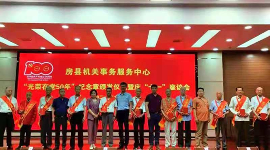 房縣機關事務服務中心舉辦“光榮在黨50年”紀念章頒發(fā)儀式暨慶“七一”座談會