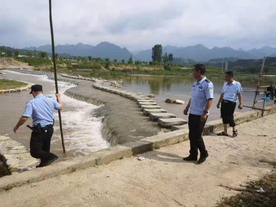 周邊找人無果后,大家把注意力放到了衣服上游的深水區(qū),在做好個(gè)人安全防護(hù)的基礎(chǔ)上,王輝所長(zhǎng)親自下到深水區(qū)用竹竿和腳一點(diǎn)點(diǎn)查探,近三十分鐘后還是搜尋無果后,大家的心都懸了起來。又繼續(xù)向下游查找和詢問周邊群眾