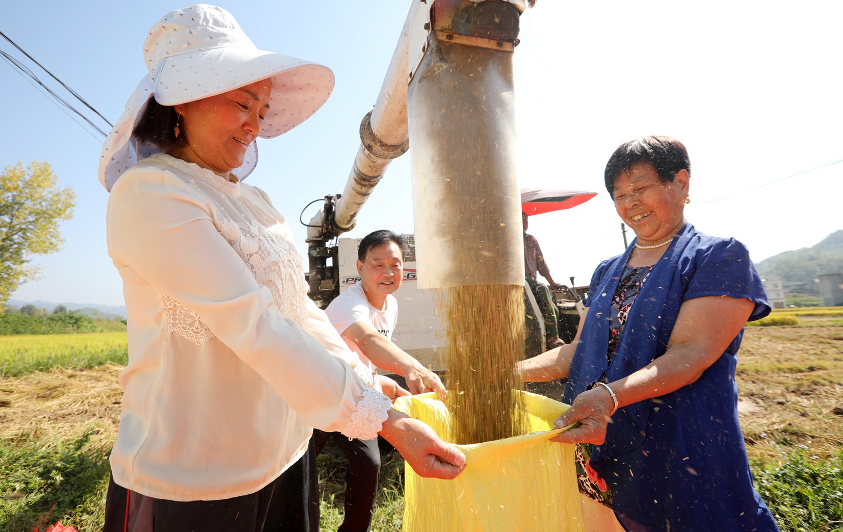 9月12日,聯(lián)合收割機(jī)在軍店鎮(zhèn)月明村收割水稻。金秋九月,我縣各地水稻喜獲豐收,進(jìn)入收割黃金期,隨處可見收割機(jī)械大展身手。目前,縣農(nóng)業(yè)機(jī)械服務(wù)中心跟蹤服務(wù)農(nóng)機(jī)手,全力爭搶睛好天氣收割水稻,日收面積達(dá)到10000畝以上。