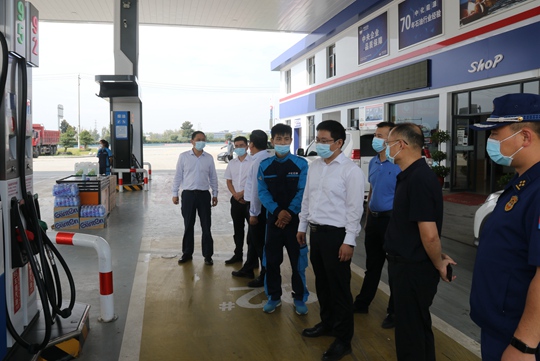 謝曉鳴一行在加油站檢查安全生產(chǎn)