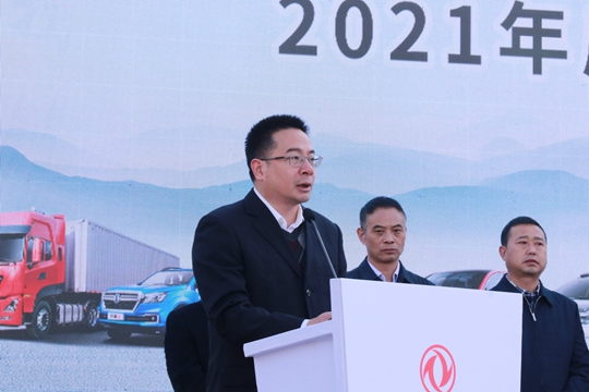 東風(fēng)汽車集團(tuán)有限公司工會(huì)副主席孫三寶在儀式上講話。他說,房縣是東風(fēng)公司重點(diǎn)對(duì)口支援的縣市之一,在全面建成小康社會(huì)、打贏脫貧攻堅(jiān)戰(zhàn)的偉大進(jìn)程中,東風(fēng)公司攜手房縣,高質(zhì)量完成扶貧任務(wù),助力房縣如期實(shí)現(xiàn)脫貧摘帽。今年四月,東風(fēng)公司首個(gè)政企共建產(chǎn)業(yè)協(xié)作(汽車消費(fèi))示范項(xiàng)目在房縣啟動(dòng),政企雙方都出臺(tái)了一系列購(gòu)車惠民政策,目的主要是通過東風(fēng)汽車的產(chǎn)業(yè)優(yōu)勢(shì),以產(chǎn)業(yè)協(xié)作促進(jìn)民生改善,讓利房縣人民,拉動(dòng)地方經(jīng)濟(jì)增長(zhǎng)。截至10月底,房縣東風(fēng)品牌車輛銷售已超過1800臺(tái),全年將突破2000臺(tái)、挑戰(zhàn)2500臺(tái)。面向“十四五”,東風(fēng)公司將堅(jiān)守“為用戶提供優(yōu)質(zhì)汽車產(chǎn)品和服務(wù)的卓越科技企業(yè)”的定位,努力踐行“品質(zhì)、智慧、和悅”的價(jià)值觀,在人民享有美好汽車生活和建設(shè)汽車強(qiáng)國(guó)進(jìn)程中貢獻(xiàn)力量,進(jìn)一步加強(qiáng)與房縣產(chǎn)業(yè)合作,再攜手共創(chuàng)輝煌。