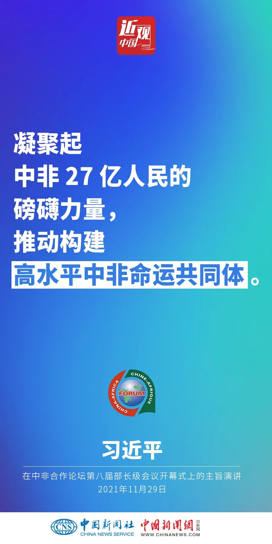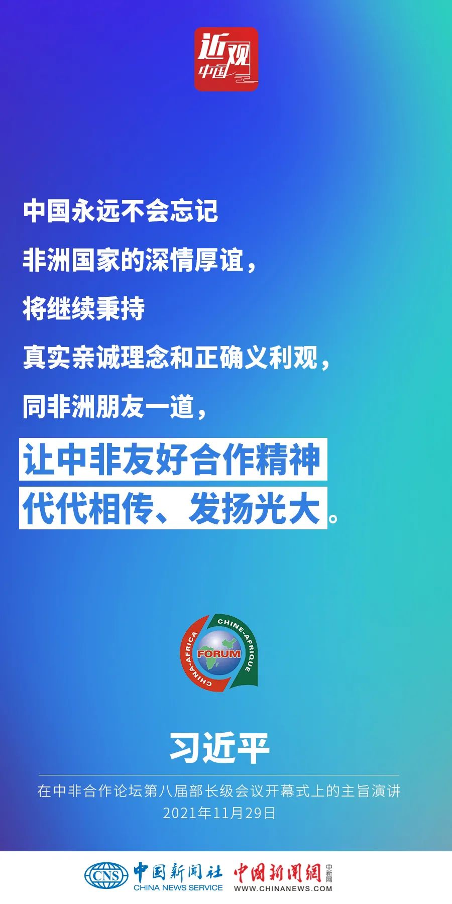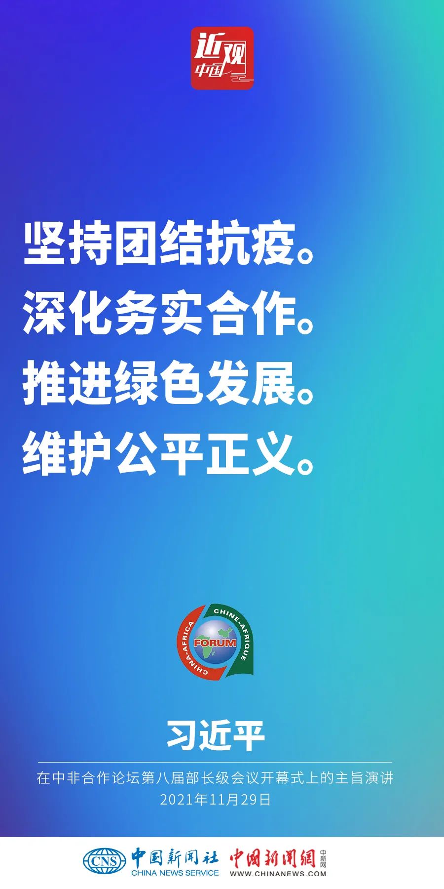 11月29日晚,國家主席習(xí)近平在北京以視頻方式出席中非合作論壇第八屆部長級會議開幕式并發(fā)表題為《同舟共濟(jì),繼往開來,攜手構(gòu)建新時(shí)代中非命運(yùn)共同體》的主旨演講。他強(qiáng)調(diào)——