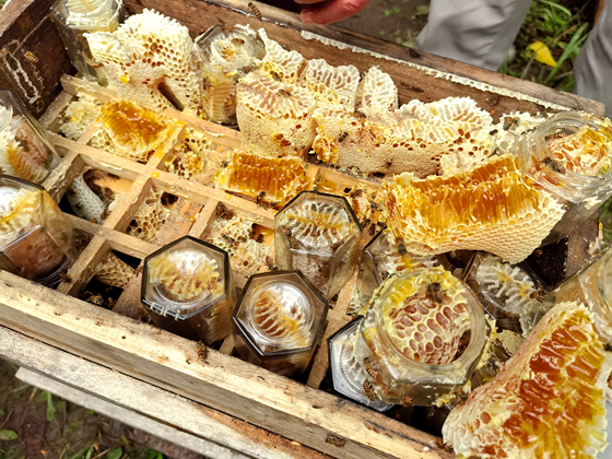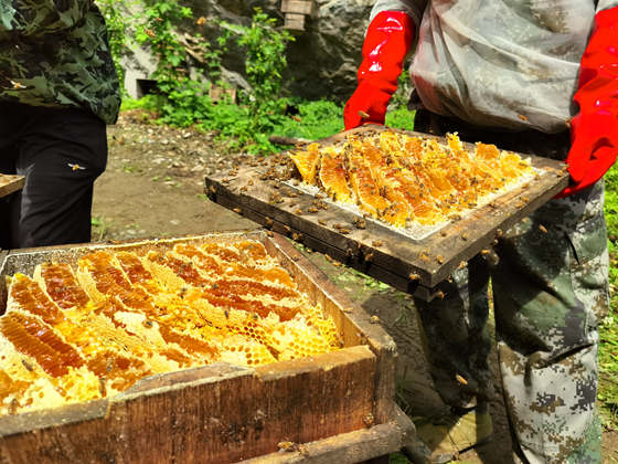 這里的蜂蜜都是被中華蜜蜂“供養(yǎng)”出來(lái)的。何為中華蜜蜂?中華蜜蜂又稱(chēng)中華蜂、中蜂、土蜂,是東方蜜蜂的一個(gè)亞種,屬中國(guó)獨(dú)有的蜜蜂品種。