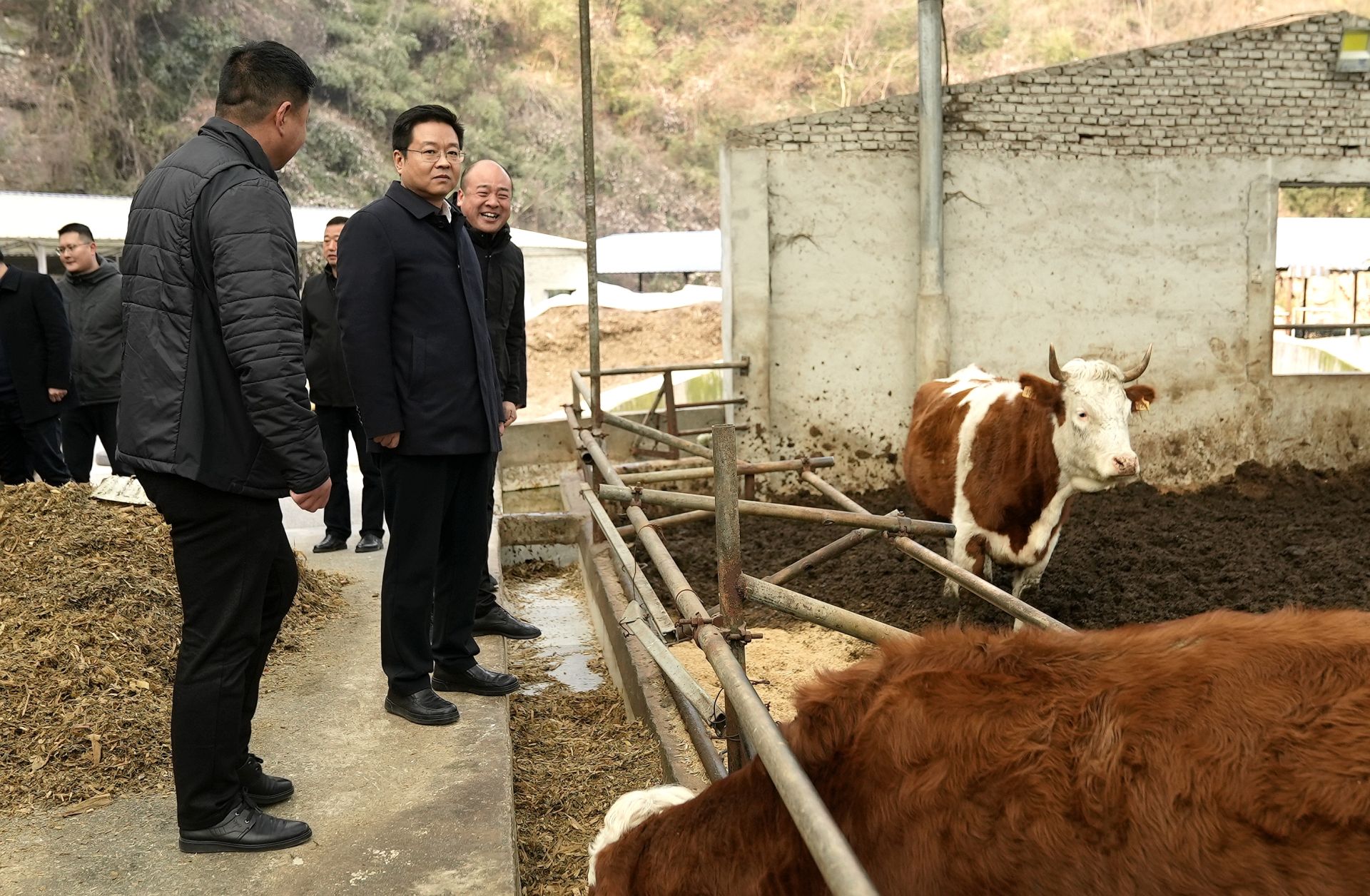 謝曉鳴在大木廠鎮(zhèn)牽?jī)|肉牛養(yǎng)殖合作社察看養(yǎng)殖情況