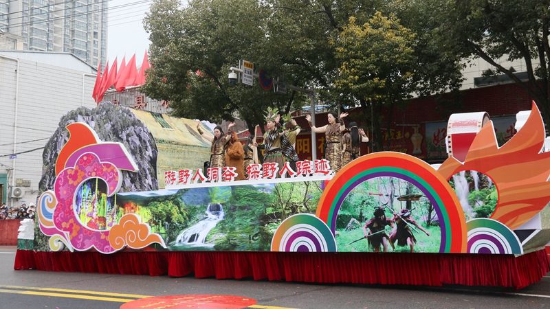 助力鄉(xiāng)村振興、呈現(xiàn)詩經(jīng)文化野人之謎、弘揚工匠精神等不同風格主題的彩車多角度、全方位展示著我縣經(jīng)濟社會發(fā)展成果。軍店鎮(zhèn)帶來的《古鎮(zhèn)慶豐年》現(xiàn)場感染力強烈,表演者們身穿馬裙、大花襖,踏著鼓點扭、擺、跳、轉(zhuǎn),盡情歡舞。中壩鄉(xiāng)圍繞特色產(chǎn)業(yè)中壩大曲酒,以舞蹈的形式繪出一幅山水酒鄉(xiāng)、醉美中壩的詩意畫卷,同時邀請沿途觀眾品鑒房縣地方白酒佳釀。