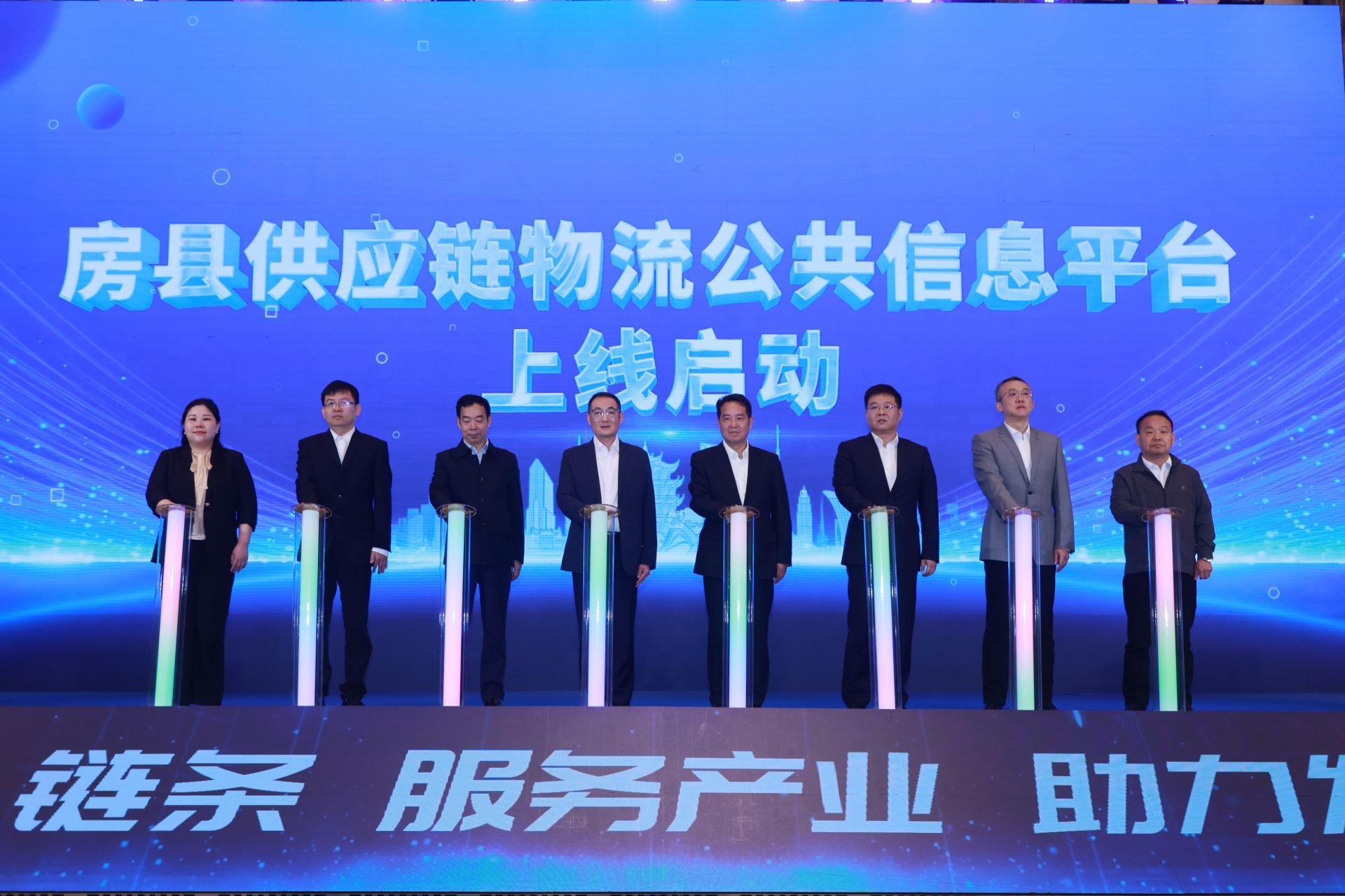 啟動(dòng)儀式在武漢會(huì)議中心隆重舉行,省直有關(guān)部門負(fù)責(zé)人,湖北港口集團(tuán)有限公司、湖北供應(yīng)鏈公共信息服務(wù)股份有限公司、中國(guó)郵政集團(tuán)有限公司、聯(lián)投資本等企業(yè)負(fù)責(zé)人共同見證房縣供應(yīng)鏈物流公共信息平臺(tái)正式上線運(yùn)營(yíng)。