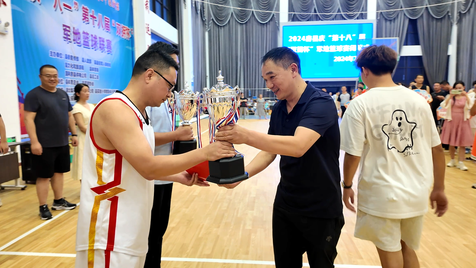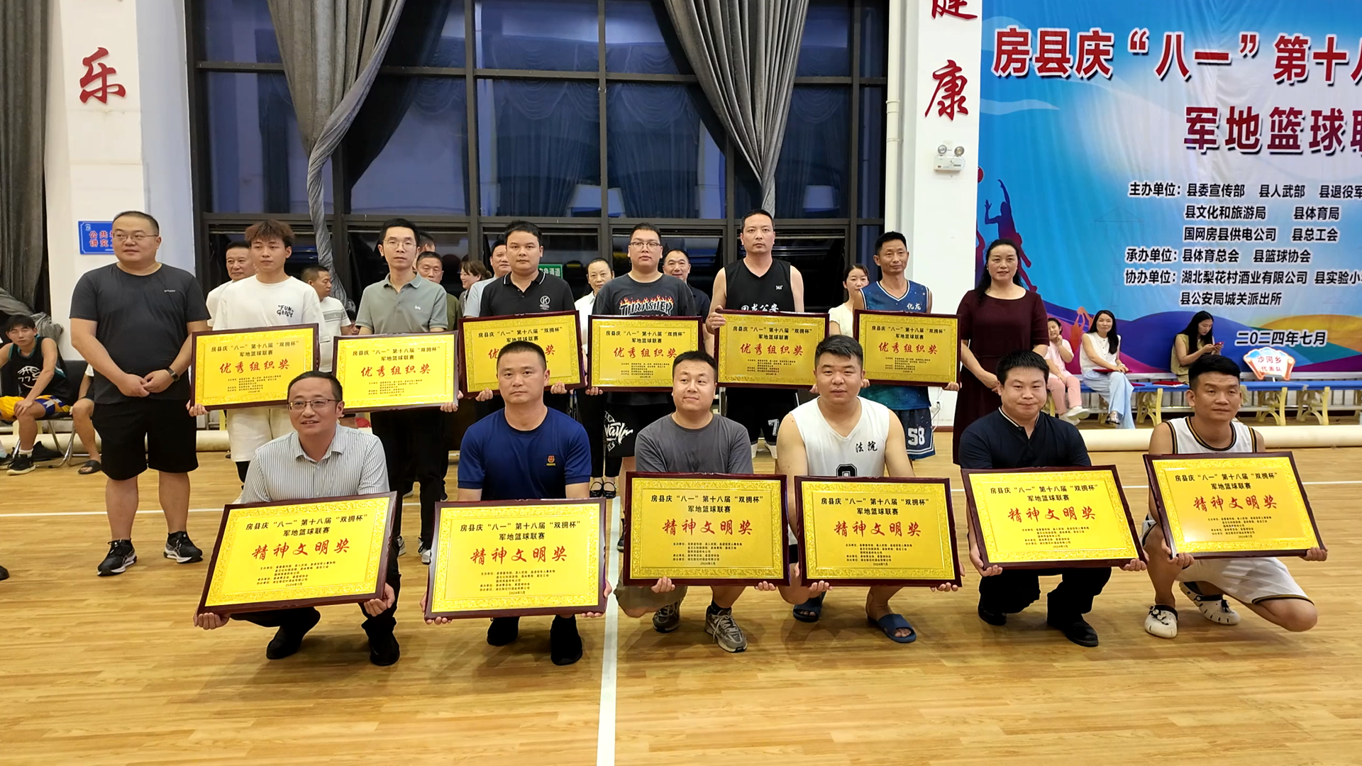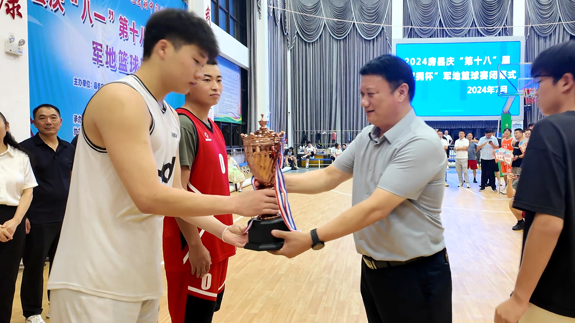 房縣新聞網(wǎng)訊 記者 秦珊珊 通訊員 吳麗麗 報(bào)道:7月30日晚,我縣慶“八一”第十八屆“雙擁”杯軍地籃球賽勝利閉幕。縣委常委、宣傳部長(zhǎng)王玲,縣人武部部長(zhǎng)劉鑫出席閉幕儀式,并為各獲獎(jiǎng)代表隊(duì)頒發(fā)獎(jiǎng)牌。