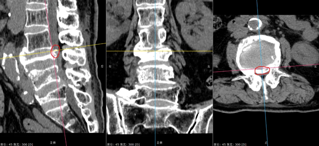 ▲取之前,骨塊突入椎管、壓迫神經。