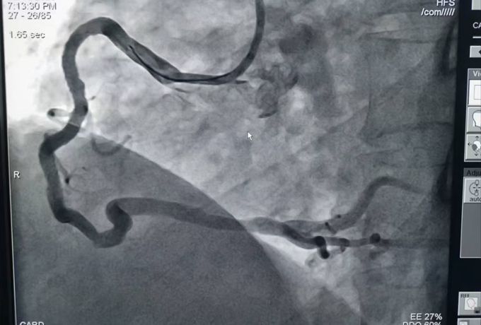 為準(zhǔn)確判斷病情,建議立即行冠脈造影檢查。進(jìn)一步的冠脈造影結(jié)果證實了醫(yī)生的判斷,而檢查結(jié)果也著實讓人揪心:患者三支心臟主血管均存在嚴(yán)重彌漫性鈣化病變,且嚴(yán)重狹窄,尤其是其中兩根較為嚴(yán)重,最重狹窄為次全閉塞。