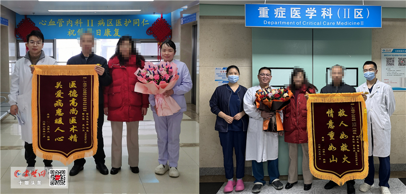 近日,恢復良好的劉女士在家屬的陪同下來到十堰市人民醫(yī)院,分別將定制的錦旗送到重癥醫(yī)學科和心臟中心心血管內(nèi)科2病區(qū),以表達對其的救命之恩。