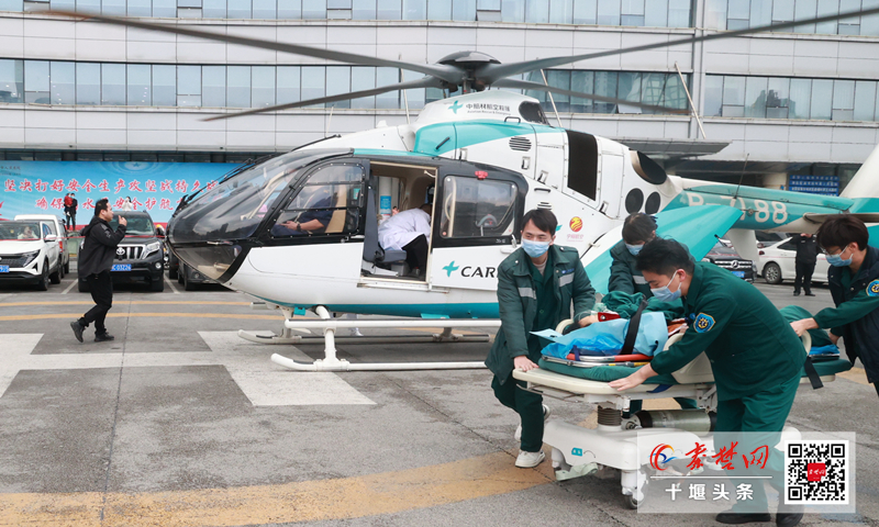 秦楚網(wǎng)-十堰頭條訊?通訊員 阮靖雯 報道:3月15日下午,十堰市人民醫(yī)院直升機緊急出動,為一名鄖西嚴重多發(fā)傷患者開辟“空中生命通道”,僅用15分鐘就將其轉(zhuǎn)運回院救治,為患者贏得了寶貴的搶救時間,也為秦巴山區(qū)百姓的生命安全筑起了一道堅實的屏障。