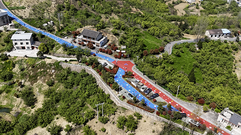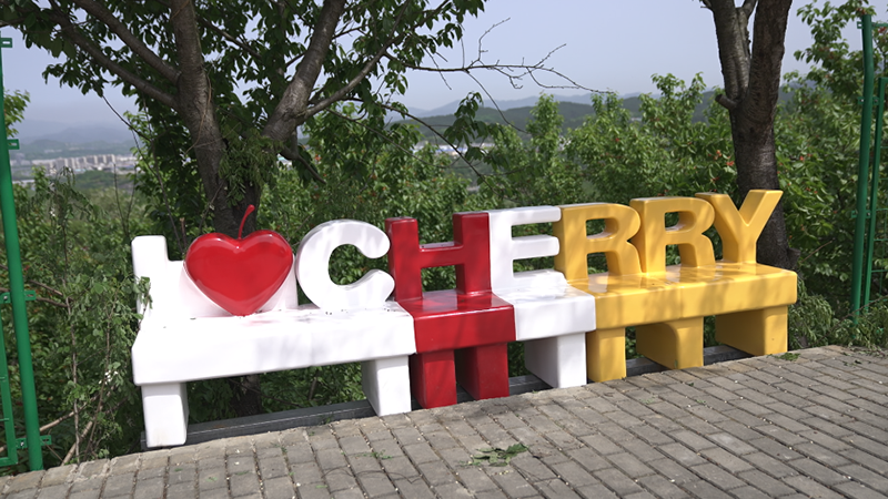 在八里村櫻桃園記者看到,修葺一新的園區道路整齊的標線加上櫻桃與櫻花彩繪,讓一條普通的路也充滿童趣與生機;道路兩旁清晰醒目的指引標識隨處可見,充滿櫻桃元素的主題休息區、休息椅科學散布在園區內,為游客提供了兼具美觀與實用的歇腳之地。