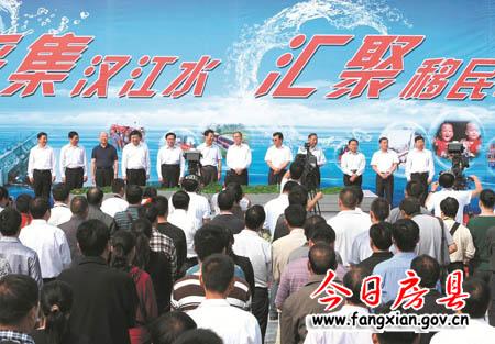 國務(wù)院南水北調(diào)辦主任鄂竟平,省委書記、省人大常委會(huì)主任李鴻忠,省委副書記、省長王國生,國務(wù)院南水北調(diào)辦副主任蔣旭光,省委常委、省委秘書長傅德輝,省人大常委會(huì)副主任劉友凡,副省長田承忠,省政協(xié)副主席陳天會(huì),省政府秘書長王祥喜,省政府副秘書長駱新華,省移民局局長汪元良,市委書記周霽,市委副書記、代市長張維國等領(lǐng)導(dǎo)參加匯水儀式。