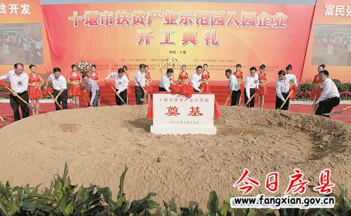張昌爾宣布秦巴山片區(qū)十堰市扶貧產(chǎn)業(yè)示范園入園企業(yè)開工。出席開工儀式的各位領(lǐng)導共同為示范園奠基(如圖)。